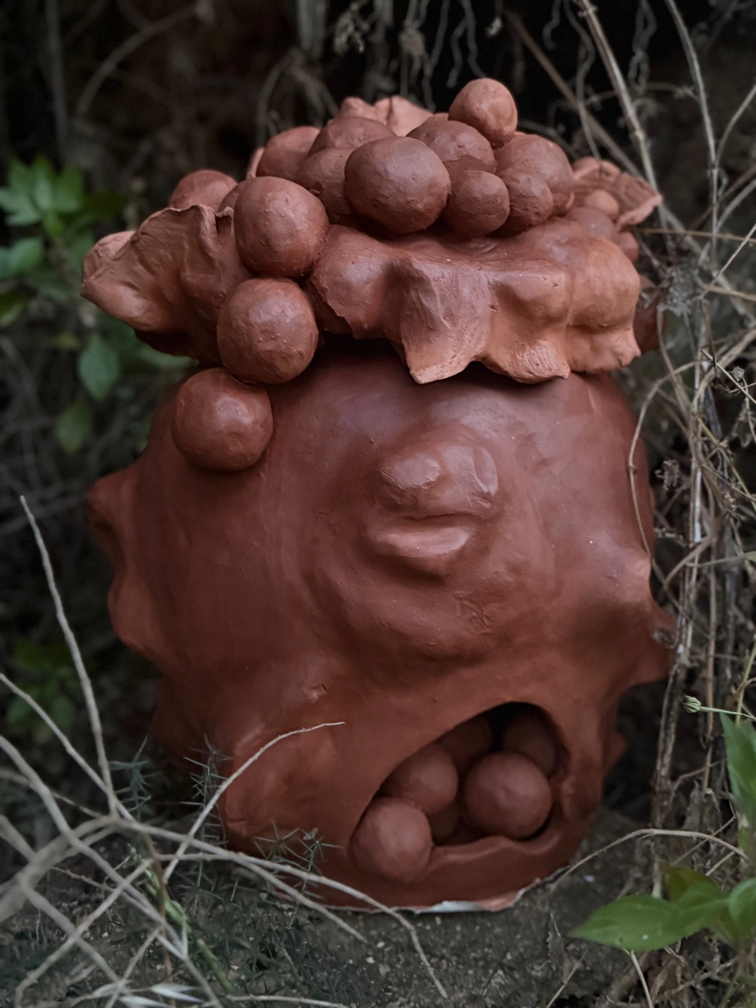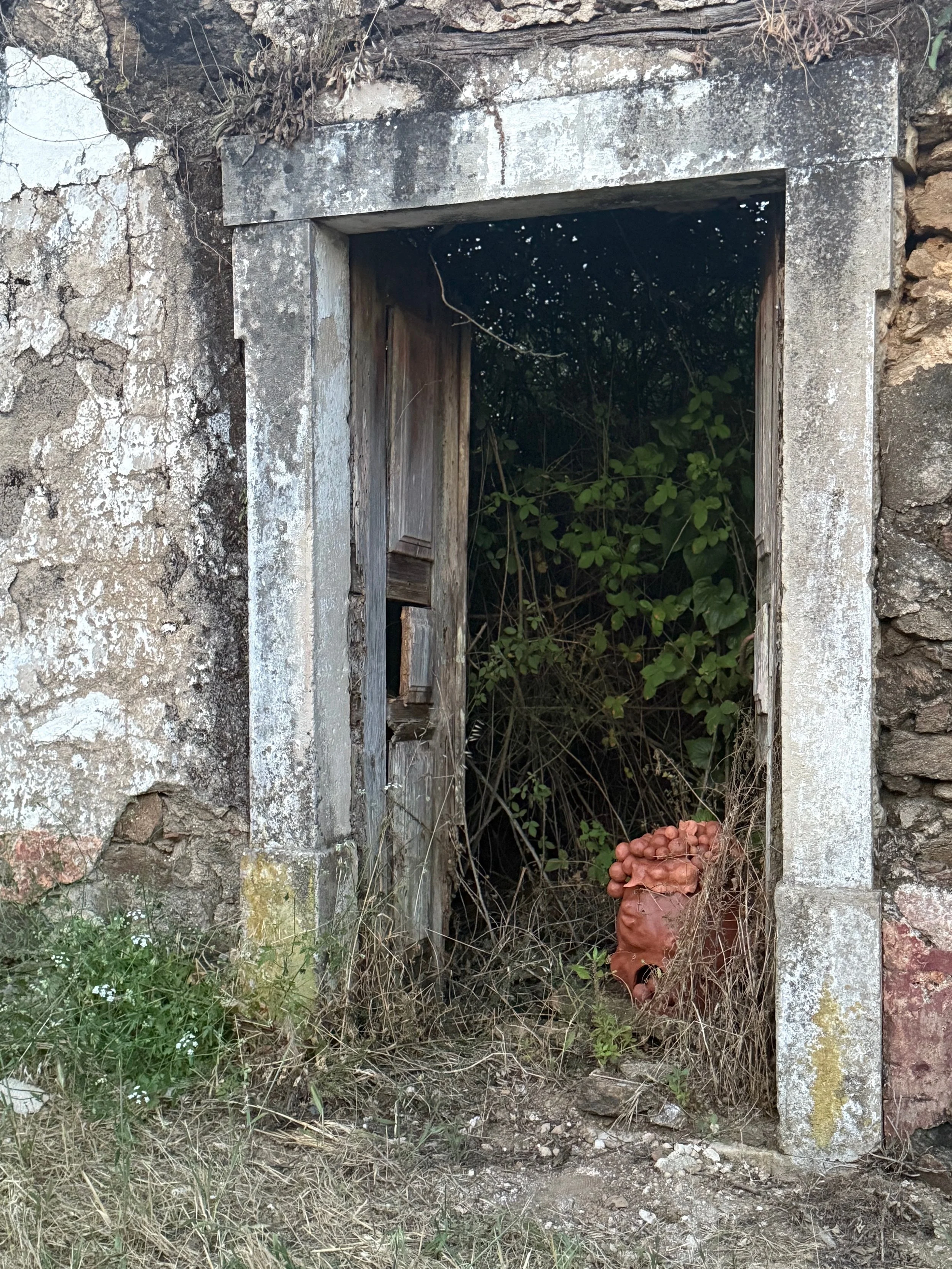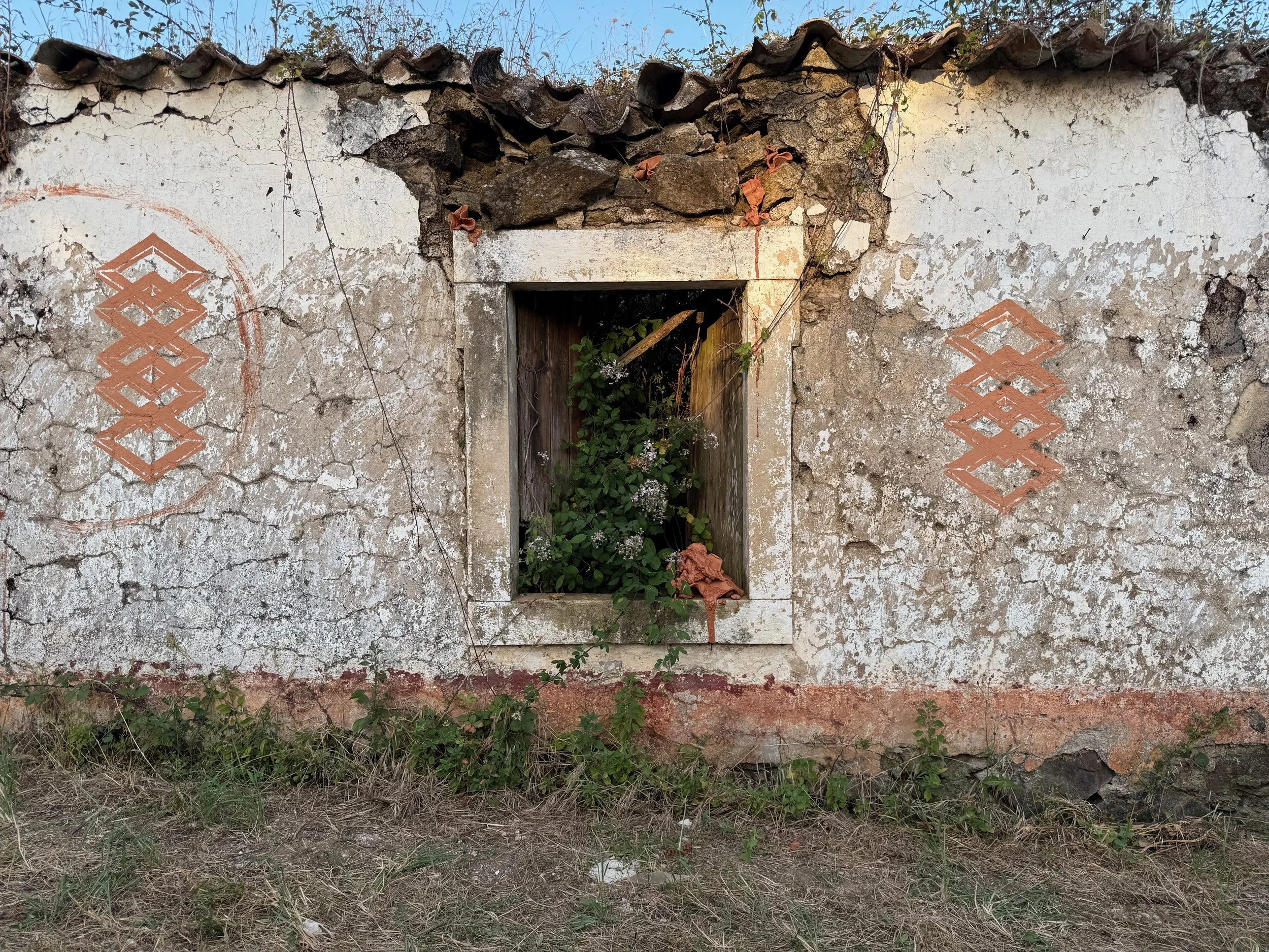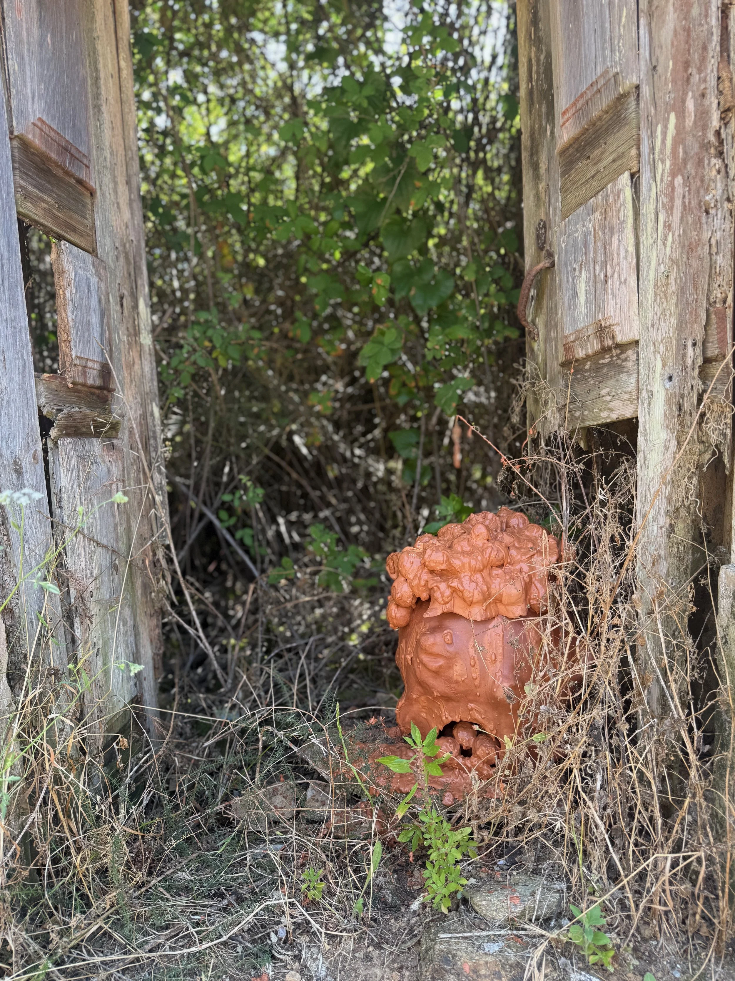 Site specific installation. Unfired terracotta vessel, forms and slip paint, Tomar, Portugal 2025.
